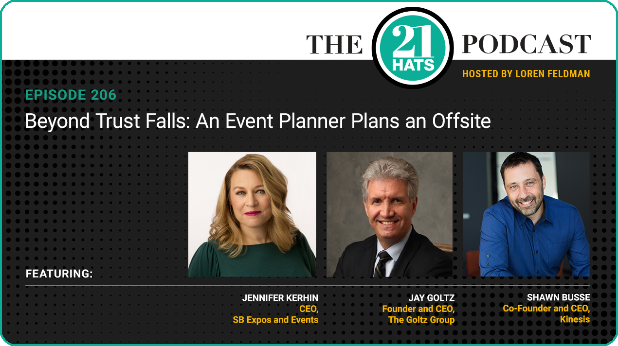 An Event Planner Plans an Offsite: This week, Shawn Busse, Jay Goltz, and Jennifer Kerhin talk about what it takes to plan and execute an employee retreat—especially in our post-Covid, more-remote environment. Do you go offsite? Do you take everybody? Do you delegate the planning? Do you try to measure the ROI? Jennifer tells us about the interesting responses she got when she encouraged her employees at her retreat to ask her anything. Shawn explains why he let his leadership team do the planning—and didn’t set a budget. Jay, meanwhile, offers a slightly different perspective: “My company retreat,” he tells us, “is I cut back on my advertising. That's my retreat.”