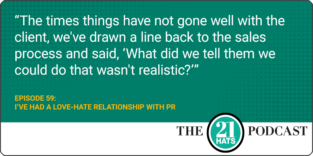 Episode 59: I’ve Had a Love-Hate Relationship With PR: This week’s conversation with Paul Downs, Jay Goltz, and William Vanderbloemen was supposed to be about how the pandemic has affected sales strategies—and for a while it was. But it seemed Paul, Jay, and William really wanted to talk public relations. They talked about how to get PR and how to assess the results. They compared the merits of public relations to those of advertising. And they discussed whether you need to hire a firm or whether you can do it yourself. One concern all three shared is the cost. This is how Jay put it: “You hire an accountant, you're going to get some accounting. You hire a lawyer, they’ll do some legal work. PR's one of the few things you can pay money for and get absolutely nothing.”