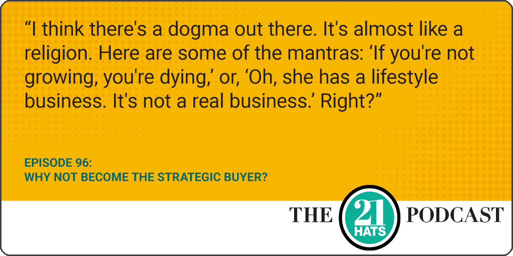 Why Not Become the Strategic Buyer? This week, Shawn Busse, Karen Clark Cole, and Jay Goltz compare notes on some of the many choices they’ve made building their businesses, such as the emphasis they’ve placed on growth, the risks they see in growing through acquisition, and—as Karen has recently experienced—the rewards of being acquired. They also discuss whether The Great Resignation, despite forcing companies to pay higher wages and work harder to find and keep talent, just might be a good thing for business owners. As Shawn says, “This puts more people into the marketplace looking for businesses where culture matters, where the owner has compassion and empathy, where families are valued, just on and on and on. And if you're that employer, you win.”