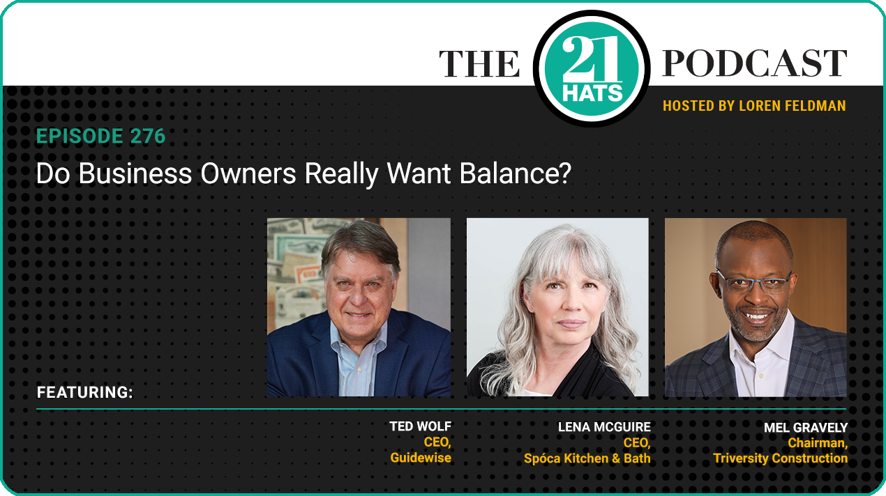 Most business owners say they want balance. They tell themselves they just need to get through this one crisis, this one launch, this one quarter — and then life will settle down. But what if that’s not actually the goal? This week, Mel Gravely, Lena McGuire, and Ted Wolf talk candidly about what it really takes to build a business — and about whether balance is something owners are truly striving for or simply something they feel they’re supposed to want. “I gotta tell you,” says Mel, “I just don’t know if people were really honest that they’d say that they’d be one to spend their time at their kid’s parent-teacher conference.”