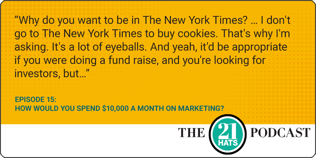 How Would You Spend $10,000 a Month on Marketing? Shawn Busse, Hans Schrei, and Sarah Segal explain what they would do with an extra $10,000 a month to spend on marketing. As we all know, there’s a lot going on right now. No one’s entirely certain where the economy is headed, and no one’s entirely certain where digital marketing is headed. So it seemed like a good time to ask our regulars where they would place their bets if we offered them each an imaginary pot of money to promote their brands. Spoiler alert: Their responses gave us a good sense of what these business owners think is working right now—and it’s definitely not billboards.