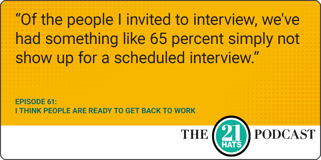 In the latest 21 Hats podcast episode, the owners compare notes on masks, vaccinations, pay, going hybrid, and filling positions.