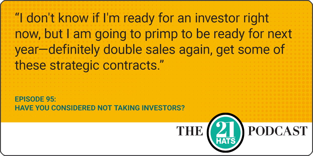 In our latest 21 Hats Podcast episode, we talk about the pluses and minuses of selling equity. Do you like having a boss?