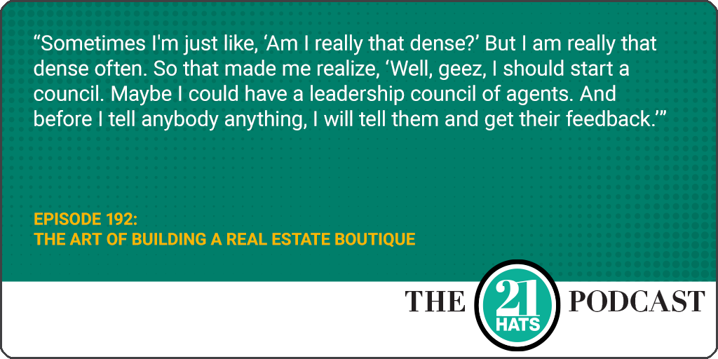 “She also figured out, somewhat counterintuitively, that her real customers aren’t the people who buy and sell homes. Her real customers, she says, are her own brokers, who happen to be independent contractors: “I can't tell anybody what to do,” Jenelle tells us. “So it's like being a politician, in a way. I've got a lot of responsibility with very little authority, and that's an interesting leadership challenge.”