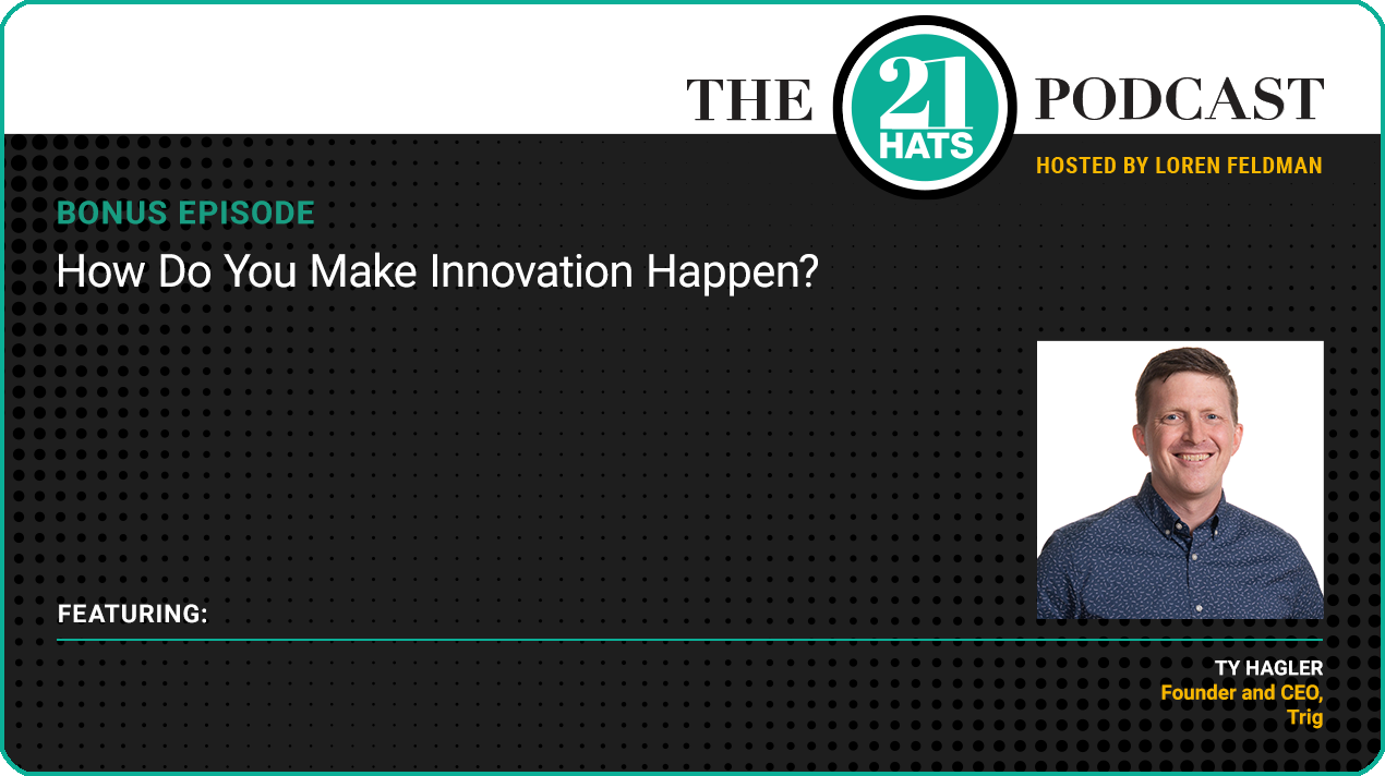 The wrong way to make innovation happen, Ty Hagler says in this week’s special bonus episode, is to have a great idea and then go all-in trying to create it. That, he says, is a really expensive way to find out if your idea works. The right way to pursue innovation, he says, is to take your idea to customers so you can assess the pain points and opportunity spaces before proceeding. Hagler, who is founder and CEO of Trig, an innovation and design firm in North Carolina, also says he’s learned that the problem with focus groups is that the more people you have in the room, the less valuable the conversation tends to be. In fact, he says, one-on-one is best.