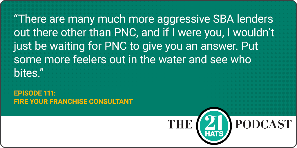 Fire Your Franchise Consultant: As listeners to this podcast know, Dana White has a remarkable array of opportunities before her, including company-owned hair salons, franchised salons, salons on military bases, hair products, and POS software. But especially since the pandemic, Dana has struggled to get traction. This week, in episode 111, special guest Ami Kassar, an expert in small business finance, guides Dana through a discussion of how she might prioritize those opportunities and get them financed.