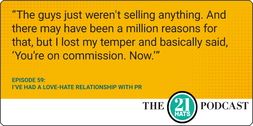 Episode 59: I’ve Had a Love-Hate Relationship With PR: This week’s conversation with Paul Downs, Jay Goltz, and William Vanderbloemen was supposed to be about how the pandemic has affected sales strategies—and for a while it was. But it seemed Paul, Jay, and William really wanted to talk public relations. They talked about how to get PR and how to assess the results. They compared the merits of public relations to those of advertising. And they discussed whether you need to hire a firm or whether you can do it yourself. One concern all three shared is the cost. This is how Jay put it: “You hire an accountant, you're going to get some accounting. You hire a lawyer, they’ll do some legal work. PR's one of the few things you can pay money for and get absolutely nothing.”