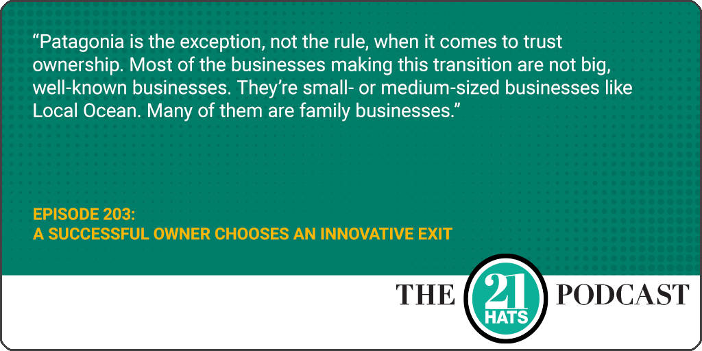 A Successful Owner Chooses an Innovative Exit: This week, special guests Laura Anderson, founder of Local Ocean, and Peter Koehler, her financial consultant, explain why Laura decided to sell her thriving seafood business in a transaction that created a business model that is neither widely known nor widely understood. It’s called an employee-ownership trust, and there are only about 50 of them in the United States. But their numbers are growing here and abroad, and for good reason. The trust model offers owners something of a choose-your-own-adventure option that can allow them to sell for a market rate in a relatively uncomplicated transaction that makes it far more likely the business will remain true to its established mission—especially when compared to selling to private equity or even to an employee stock ownership plan.