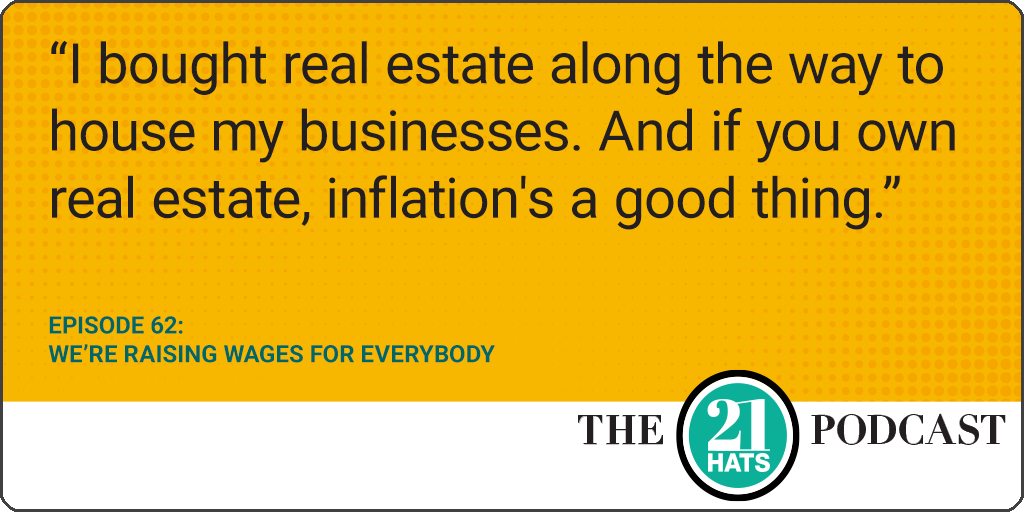 Episode 62: We’re Raising Wages for Everybody: This week, Paul Downs, Jay Goltz, and Dana White talk about confronting inflation, raising their prices, what businesses owe their employees, and the venture-backed competitor who’s opening a store in Jay’s backyard. Among the questions they discuss: Would you take back a rebound employee? Are unemployment payments the main reason owners are struggling to fill jobs? Is there anything wrong with taking business from another business? How many companies are truly disruptive? And do owners take all of the risk? Or are there risks for employees, too?