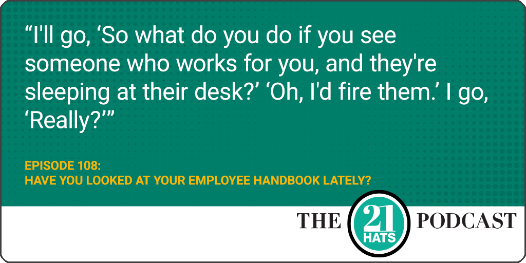 Have You Looked at Your Employee Handbook Lately? This week, Jay Goltz and Dana White talk about their handbooks. Do they take them seriously? Or is it just boilerplate? Has anything changed since the pandemic? Is the handbook the place to remind employees that they are hired at will and can be fired at any time with or without a reason? Are there issues that should not be addressed in the handbook? When was the last time they updated it? When was the last time they read it? “Me, personally?” responded Jay. “Actually picked it up and read it?” Yes, Jay, that’s the question. “Years.”