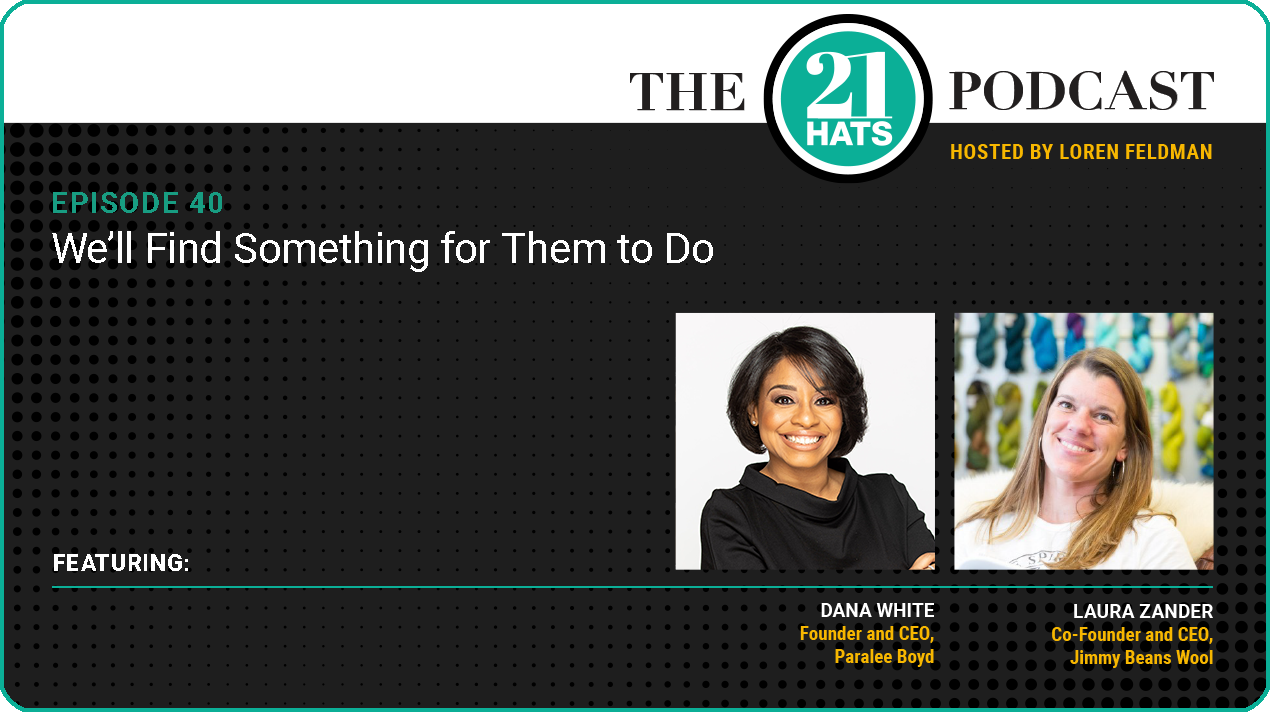 Episode 40: We’ll Find Something for Them to Do: Starting with a conversation about crucial hires Dana White and Laura Zander have made recently—an operations manager for Dana, a salesperson for Laura—we found ourselves exploring some of the great unresolved debates of entrepreneurship this week. For example, which comes first when hiring: filling specific needs or finding places for good people? With sales people, do you motivate by paying commission or build a team by paying salary? And in finance, do you bootstrap to maintain control or raise capital to grow faster? There are no right answers to these questions, but Dana and Laura tell us what’s been working for them.