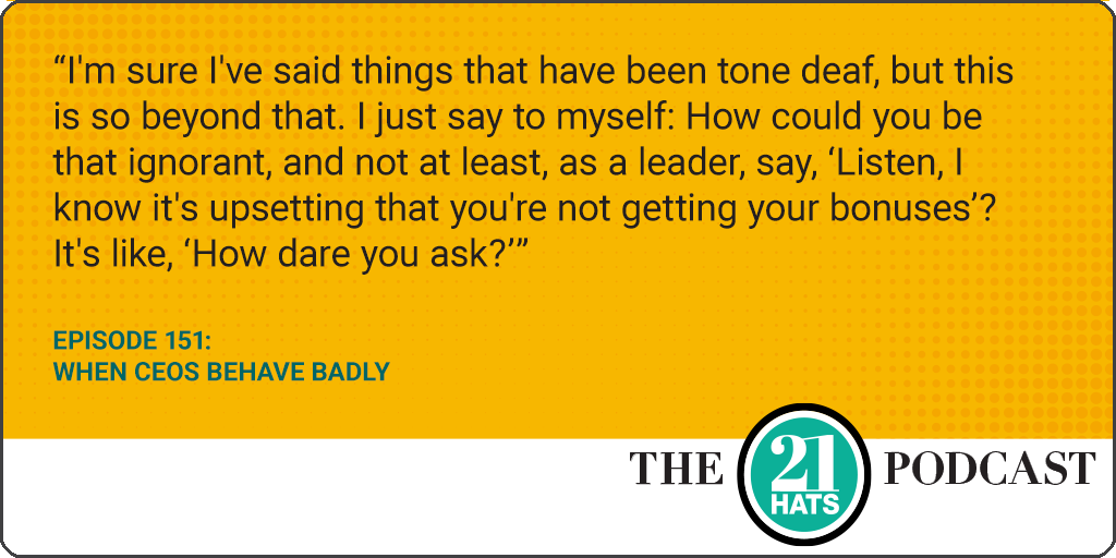 When CEOs Behave Badly: This week, our conversation starts with Shawn Busse and Jay Goltz trying to understand why CEOs keep going viral for their misguided attempts to rally the troops. Shawn suspects CEO screeds have always existed—they just haven’t been recorded. He also thinks they tend to come more from public company CEOs who are beholden to shareholders. Jay thinks they’re just morons. “I really don't understand how someone could be smart enough to run a big company like that,” he says, “and be so completely ignorant. It's shocking to me.” Of course, CEOs of both publicly owned companies and privately owned companies do have to do unpleasant things sometimes, but Shawn and Jay say they’ve learned from their own experiences handling layoffs and recessions. “Do we have to go out of our way to be callous about it?” Jay asks. “I don't think so.” Plus: the very different ways Shawn and Jay manage their hiring processes.