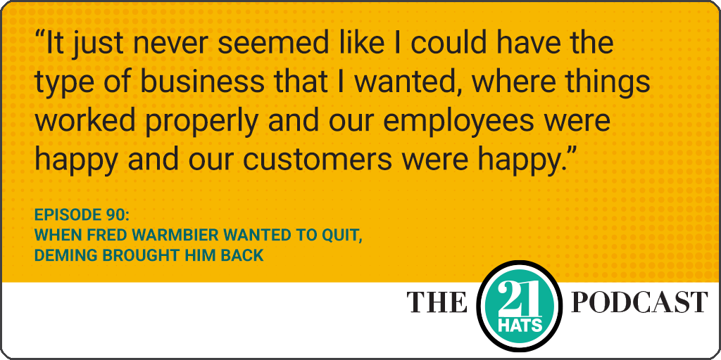 When Fred Warmbier Wanted to Quit, Deming Brought Him Back: This week, we feature a special guest, Fred Warmbier, owner of a metal-finishing business he founded in Cincinnati in 1998. About 10 years ago, Warmbier was ready to walk away from that business. “It just never seemed like I could have the type of business that I wanted,” he says, “where things worked properly and our employees were happy and our customers were happy.” That changed when he discovered the Deming Management Method through a consultant, Kelly Allan, who helped him tame the chaos. Where does one start with Deming? “You start,” says Allan, who is chairman of the Advisory Council of The W. Edwards Deming Institute, “where the pain is.” As it happens, and as he discusses in this conversation, Fred Warmbier has experienced more than his share of pain.