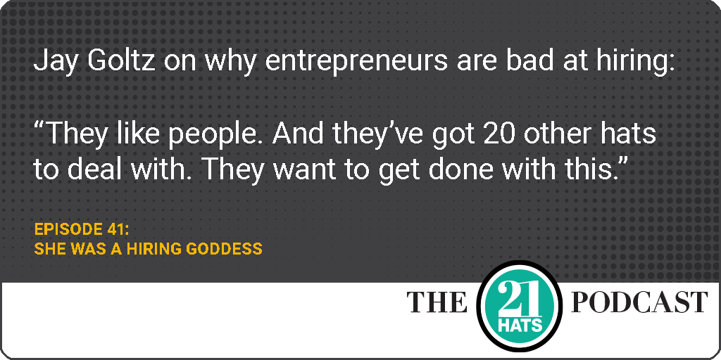 Episode 41: She Was a Hiring Goddess: Back in 1996, Jay Goltz had no real hiring process -- and the results to prove it. “My hiring success rate,” Jay tells us, “was probably, I don't know, 30 or 40 percent, which isn't much better than whoever walks in you hire.” And then he asked Ivy Garfield to take over his hiring. As Jay explains, Ivy brought an instinct, an understanding of how to assess people. “She profoundly changed my business,” he tells us. “She was here six years. Most of my key people she hired. They’re with me 25 years later.”