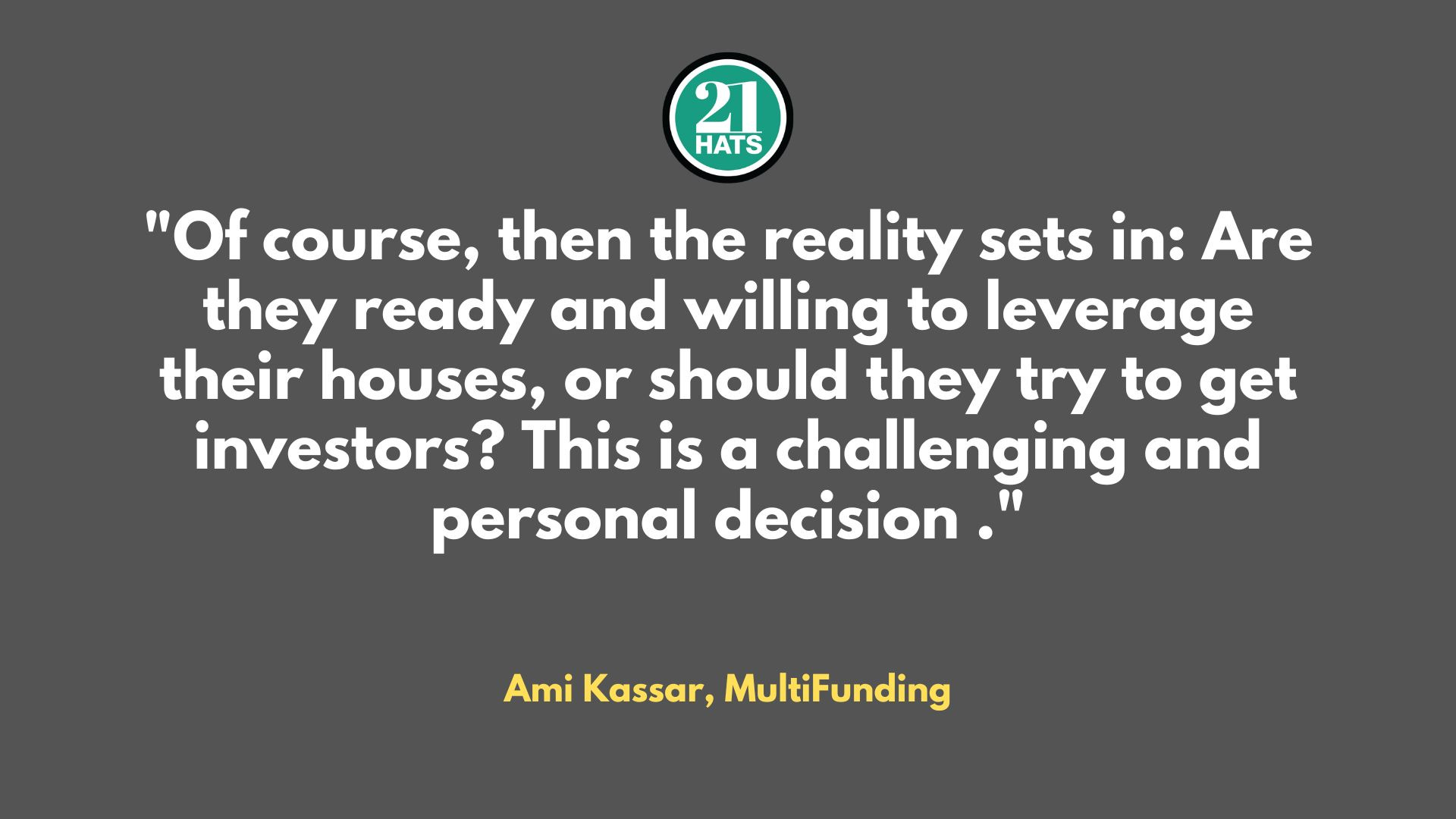 When building a business, Ami Kassar writes, entrepreneurs often face the difficult decision of whether to give up some control or to use their house as collateral.