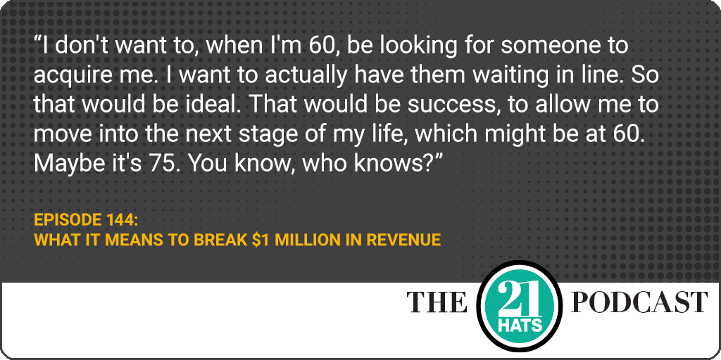 What It Means to Break $1 Million in Revenue: This week, in episode 144, Liz Picarazzi and Sarah Segal talk about their attitudes toward growth, including how they set goals, the tension between revenue and profit, deciding when growth requires additional bodies, choosing between contractors and employees, and how they would use the money if someone were to give them a million dollars to invest in their business. Plus: What will it take for them to consider themselves successful?