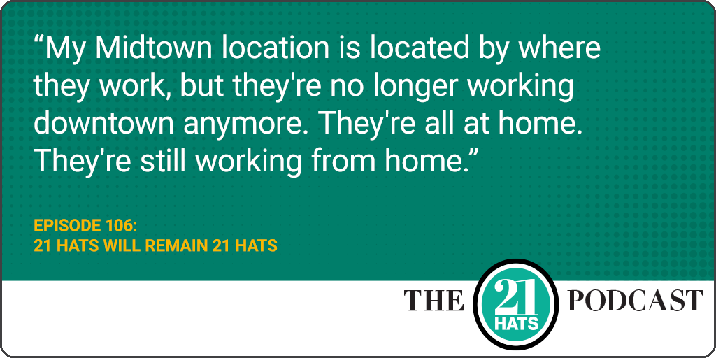 21 Hats Will Remain 21 Hats: This week, in episode 106, we start with an update of how 21 Hats has been doing since its sale brought new resources and new ambitions (Spoiler alert: The deal isn’t going great!). Then, Dana White tells Shawn Busse and Jay Goltz about the progress she’s made on multiple fronts: attempting to sell franchises to revive her struggling Midtown Detroit location, to open new salons at Fort Bragg and in Dallas, and to secure financing. The owners discuss Dana’s financing options—venture capital, private equity, bank loan—assessing, in Shawn’s words, their “degrees of evil.” Plus: Shawn explains how his views on remote work have been evolving, and Jay explains why he’s tired of being called a tyrant (even though no one’s actually called him that).