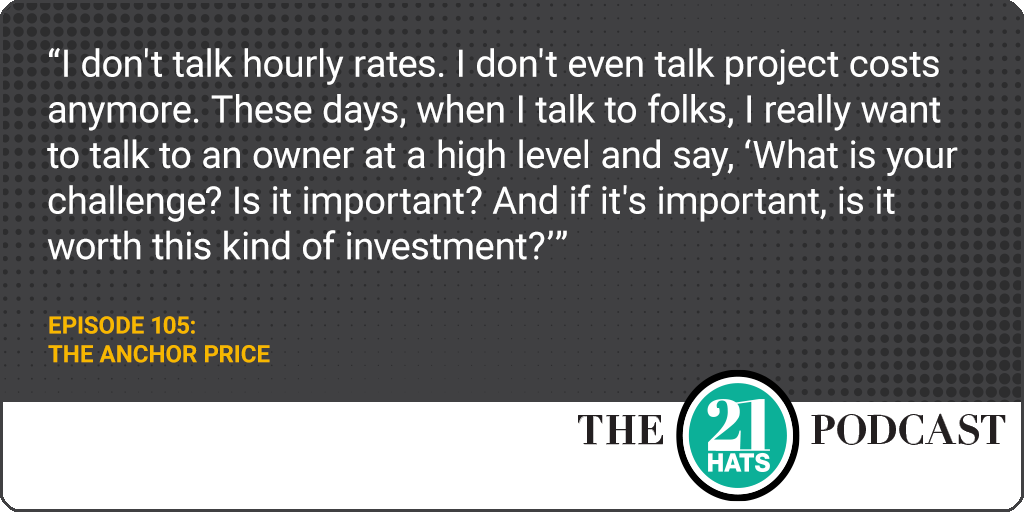 In our latest 21 Hats Podcast episode: Do you anchor low to avoid scaring anyone away? Or do you anchor high to disqualify unlikely buyers?