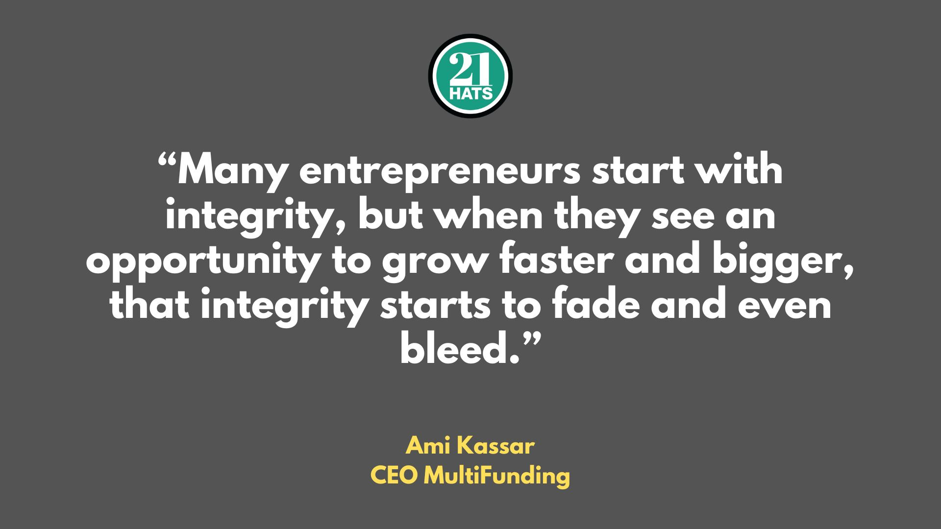 “This is where my acquaintance was coming from. Many entrepreneurs start with integrity, but when they see an opportunity to grow faster and bigger, that integrity starts to fade and even bleed. “