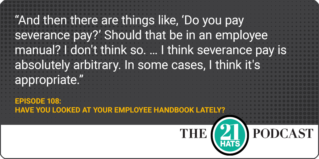 Have You Looked at Your Employee Handbook Lately? This week, Jay Goltz and Dana White talk about their employee handbooks. Do they take them seriously? Or is it just boilerplate? Has anything changed since the pandemic? Is the handbook the place to remind employees that they are hired at will and can be fired at any time with or without a reason? Are there issues that should not be addressed in the handbook? When was the last time they updated it? When was the last time they read it? “Me, personally?” responded Jay. “Actually picked it up and read it?” Yes, Jay, that’s the question. “Years.”