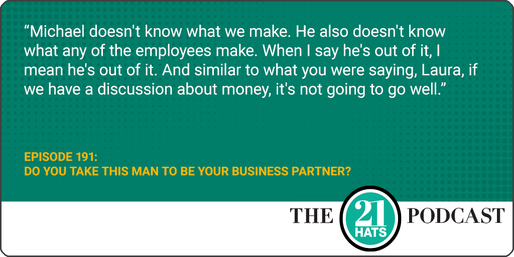 Do You Take This Man to Be Your Business Partner? This week, Liz Picarazzi, Jaci Russo, and Laura Zander talk about what it’s been like building a business in partnership with a spouse, and they all agree on some important things. For one, they all say that, had their husband been just another employee, he probably would have been fired. All three say that in their relationships, they are the gas that drives the business, and their husband is the brake that sometimes keeps them out of trouble and sometimes frustrates their entrepreneurial instincts.