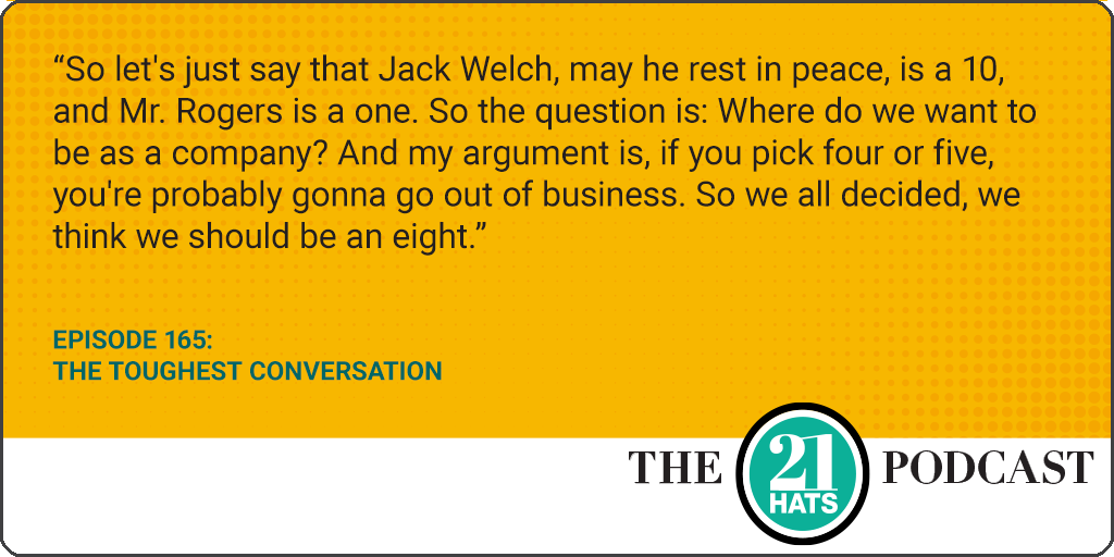 “In such situations, Jay says, he’s found it helpful to rank himself from one to 10 on the hardass scale: If Mr. Rogers is a 1 and Jack Welch—the take-no-prisoners former CEO of GE—is a 10, where do you want to be? “If you pick four or five,” Jay says, “you're probably gonna go out of business.”
