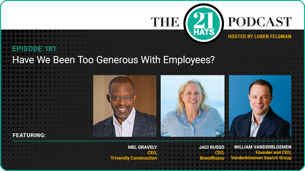 Have We Been Too Generous With Employees? This week, Mel Gravely, Jaci Russo, and William Vanderbloemen talk about the possibility that, after several years of the Great Resignation and the labor shortage, some owners may have given away the store. We all know the risks of not offering employees enough. What are the risks of offering too much? How do you even know when you’ve crossed the line? The owners also discuss why this might be a good time to consider acquiring other businesses. “I think this is a time to double-down,” says Mel. And Jaci explains how she and her team are reviewing everything the company does to see if AI can be employed to improve each and every process.