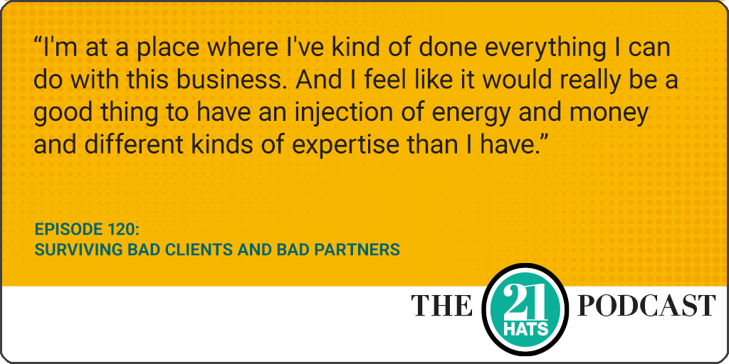 This week, Shawn Busse and Paul Downs talk about what they’ve learned from their worst client experiences. Shawn, for example, tells us that he’s come to think about taking on a client much the way he thinks about hiring an employee. And Paul stresses the importance of watching what he says about difficult clients to his employees, because he doesn’t want to encourage a cynical attitude. From bad clients, our conversation shifts to bad partnerships. Even though their own partnerships ended poorly, both Shawn and Paul emphasize that having a partner can be invaluable in getting a business off the ground. In fact, Paul says he might even consider taking on a partner again. Plus, both Shawn and Paul explain why all the talk of recession is not giving them second thoughts about their ambitious marketing plans.