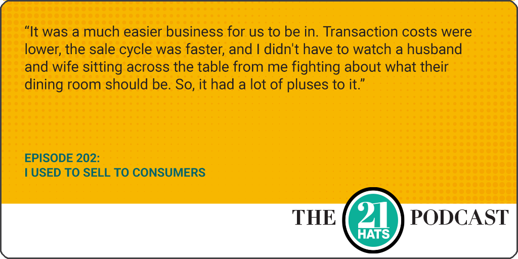 I Used to Sell to Consumers: This week, Paul Downs, Jaci Russo, and Sarah Segal talk about how they wound up pitching their products and services not to consumers, but to other businesses. They all agree that selling to business is more profitable, and they all agree that it has other advantages, as well. “In general,” says Paul, “it's easier to sell to businesses because the person you're talking to, it's rarely their money.” But some aspects of selling B2B can be harder. For example, how do you break through and reach the right person at a business, especially if you’re trying to reach the owner directly? And of course, there’s always a learning curve: Selling to a big business requires a level of professionalism that can be challenging, especially early on.