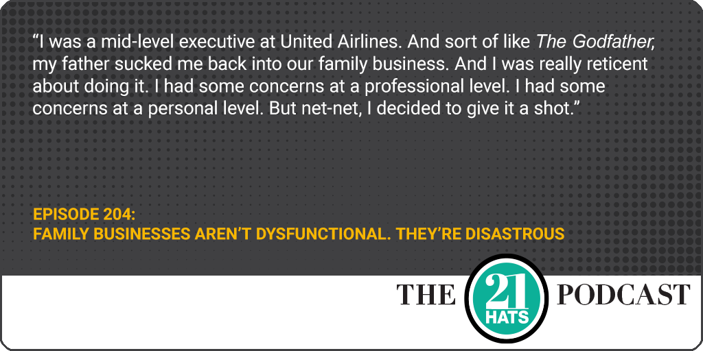 Don’t miss the latest 21 Hats Podcast episode, which explains why family businesses are so difficult and offers some coping strategies.