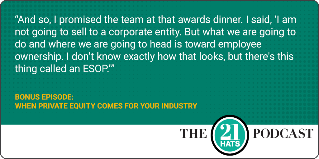 In this week’s bonus episode, Dr. Randy Spencer talks about the changes that have been roiling vet businesses: For one thing, that pandemic puppy boom we all heard about has brought additional stress to veterinary workers who had already had more than their share. For another, there’s been a wave of corporate money and private equity flowing into the industry. That sounds as if it could be a good thing, and Spencer says he’s been dodging a constant series of acquisition inquiries for years. But the big money has also engendered considerable turnover and disruption, and in response, Spencer decided to sell 100 percent of his business, 1st Pet Veterinary Centers, to an employee stock ownership plan in 2021. The transition to an ESOP remains something of a work in progress, in part because veterinary people tend to be more focused on pets than they are on profits.