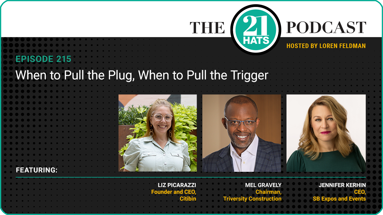 When to Pull the Plug, When to Pull the Trigger: This week, Mel Gravely, Jennifer Kehrin, and Liz Picarazzi talk about the pain of being fired by a long-time client. “It still stings,” says Jennifer, who nonetheless surprised her team by writing a note of congratulations to the CEO of the company that took the business. The conversation moves on to the tradeoff that comes with deciding between promoting managers from within or hiring them from outside the organization: What if your people aren’t ready? What if the outsiders have more experience but aren’t as good a fit? And that leads to a discussion of how to decide when to press on with a venture that’s struggling—and when to give up on it. Not surprisingly, all three owners have some experience in this area.