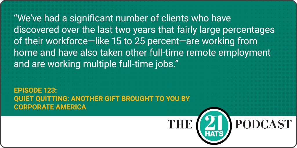 Another gift brought to you by corporate America: This week, in light of reports that half of the U.S. workforce has “quietly quit,” Shawn Busse, Paul Downs, and William Vanderbloemen talk about the latest rage: Is quiet quitting something new? Is it just a media creation? Have Shawn, Paul, and William experienced it in their businesses? And who’s to blame? Plus, the three owners discuss how they hire for engagement and how they’ve changed their hiring processes in response to the pandemic and the labor shortage. For example, Paul explains why, in this brave new world, he continues to flip conventional wisdom on its head: Instead of hiring slow and firing fast, he’s been hiring fast and firing slow. And he says it’s working.